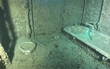 Det andra dyket var ett nattdyk upplyst av våra dyklampor. Denna gång höll vi oss lite grundare och simmade endast längs däcket. Ännu en gång kom jag att tänka på Titanics upplysta vrak när jag såg alla dessa lampor lysa upp däcket i mörkret. Det var en spöklik, men häftig känsla att göra ett nattdyk på ett så stort vrak. Morgonen efter gjorde vi vårt morgondyk på vraket. Denna gång började vi med att simma ut till det ena lokomotivet som ligger på 30 meters djup. Därefter simmade vi till det sprängda området för att se stridsvagnarna och ammunitionen. Vi fortsatte akterut för att se den berömda kanonen. ![]() Kaptenens badrum med badkar och toalett.
